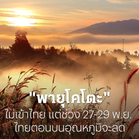 อุตุฯ ฉบับ 2 พายุ "โคโตะ" ไม่เข้าไทย แต่ช่วง 27-29 พ.ย. ไทยตอนบนอุณหภูมิจะลด