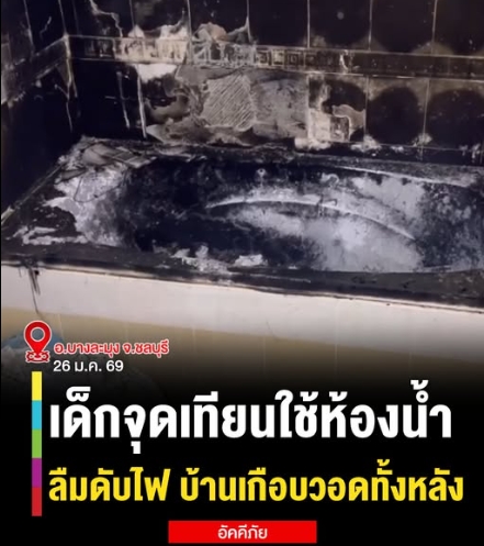 เด็ก 10 ขวบจุดเทียนเข้าห้องน้ำ เพราะบ้านถูกตัดไฟ เสร็จธุระลืมดับเทียน ปล่อยทิ้งไว้ทำไฟไหม้เกือบวอดทั