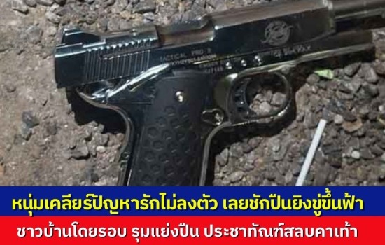 หนุ่มบุกเคลียร์ปัญหารักไม่ลงตัว ชักปืนแบลงค์กันยิงขู่ขึ้นฟ้า ชาวบ้านฮือรุมประชาทัณฑ์สลบคาที่ เพื่อน-