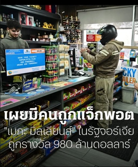 พบเศรษฐีใหม่ถูกรางวัล 980 ล้านดอลลาร์ แจ็กพอต "เมกะ มิลเลียนส์" ในรัฐจอร์เจีย ของสหรัฐฯ