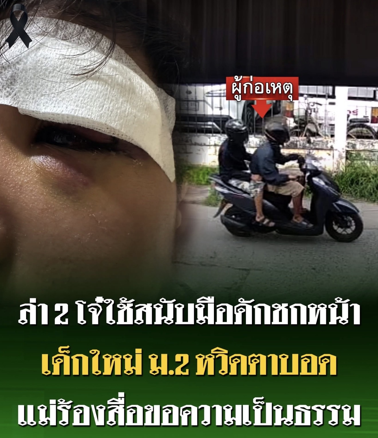 แม่ร้องสื่อ ลูกชาย ม.2 เด็กใหม่เพิ่งย้ายโรงเรียน ถูกดักใช้สนับมือชกหน้าหวิดตาบอด